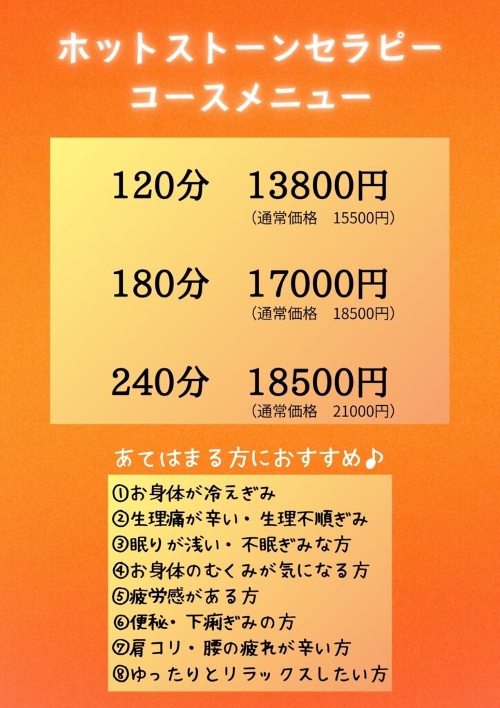 Cocoroでお身体をケアしをするのなら、今だとホットストーンがおすすめですよ♪