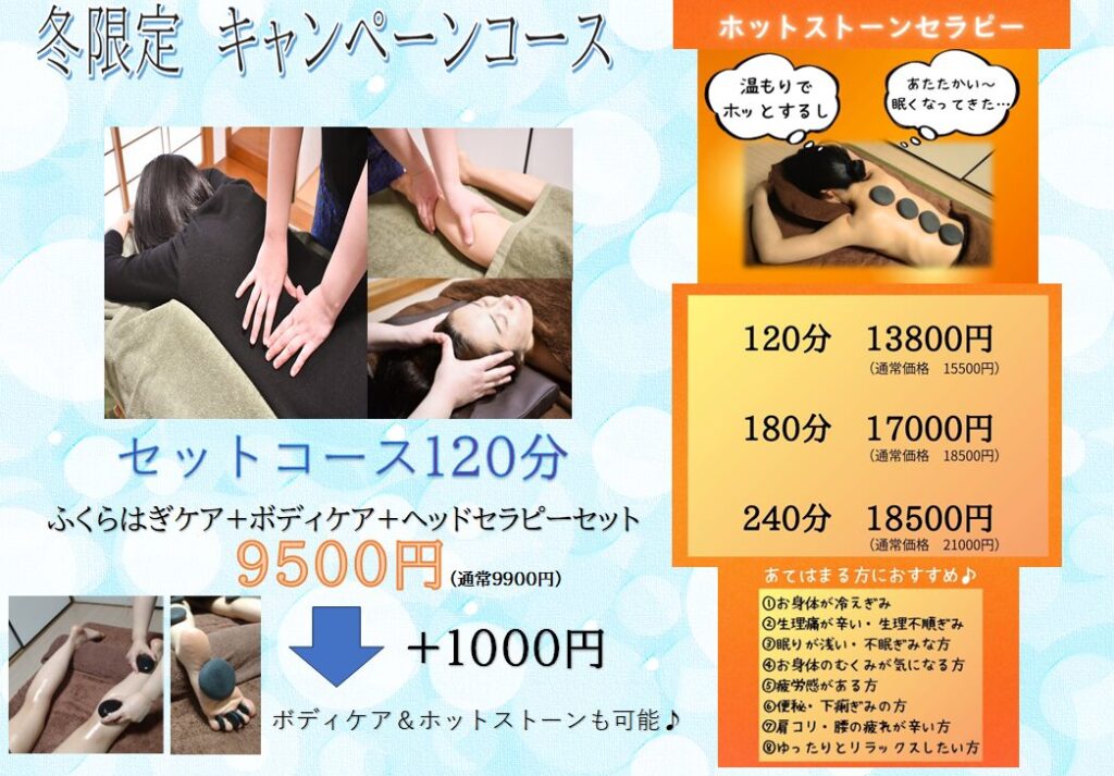 ボディケア・フットケア(足つぼ、すね・ふくらはぎケア)・アロマオイルトリートメント・ホットストーンセラピー・タイ古式マッサージ・マタニティケアと様々なリラクゼーションサービスが受けることができ、